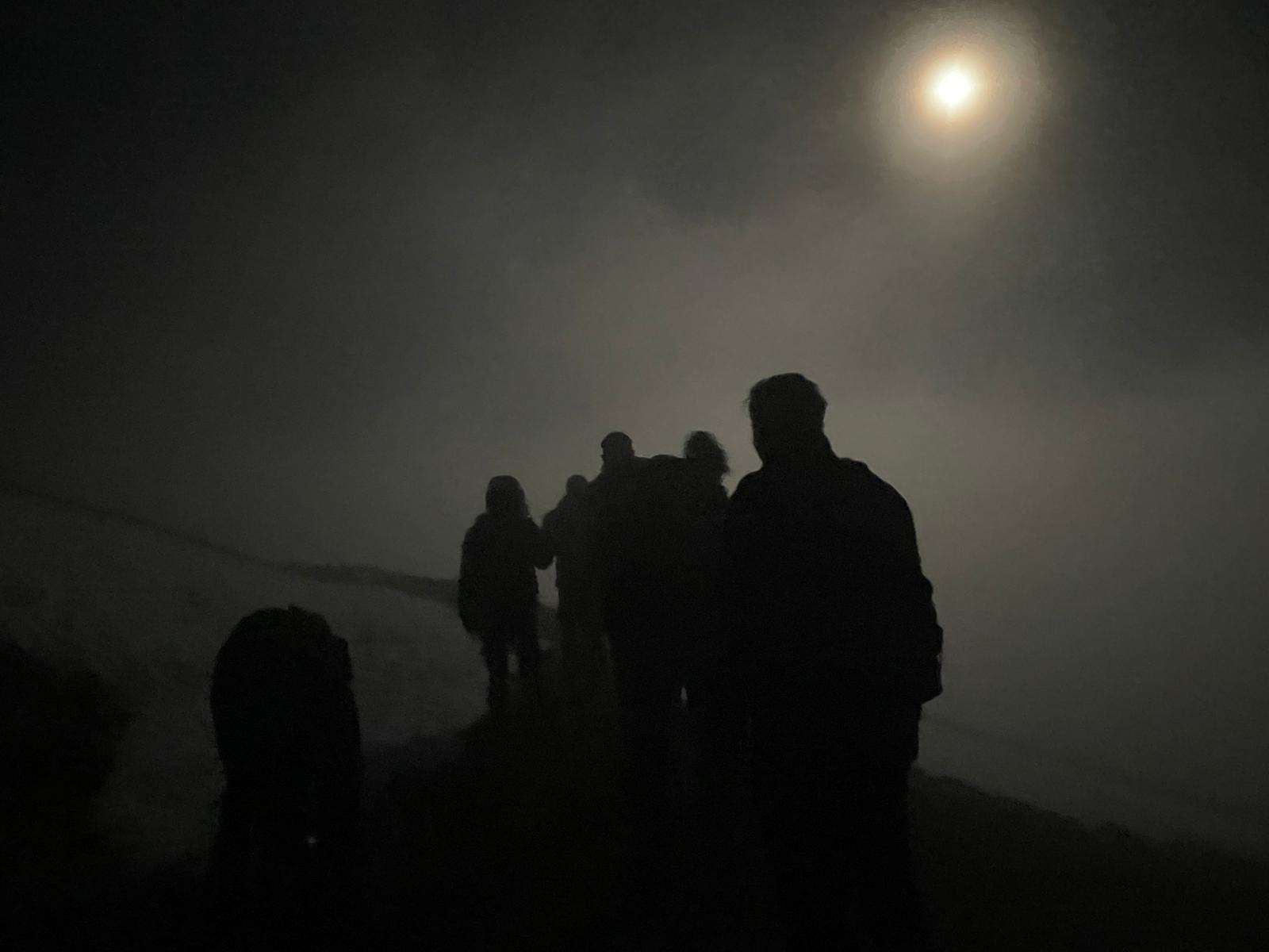 Winter night hike through the trenches of the Great War with the help of snowshoes under the full moon.